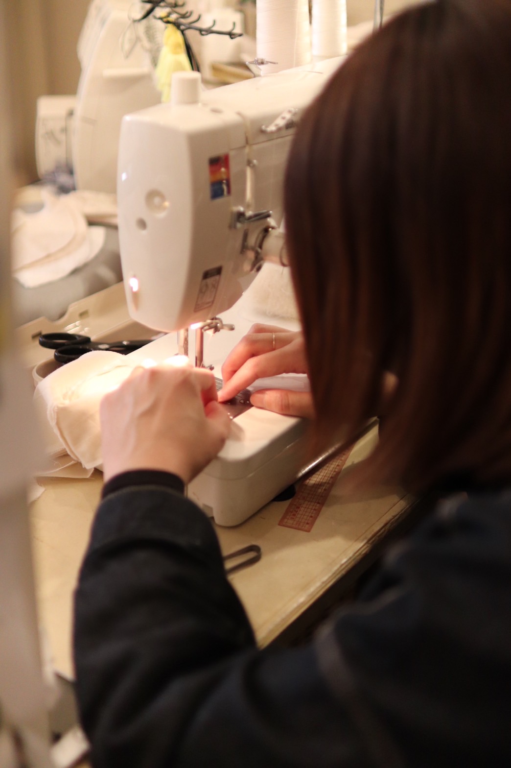 まずは生地を選ぶところから始まり、これまでの経験からもイメージのストックはたくさんありますが、そのイメージに合う生地に出会ってから製作に入るようです。