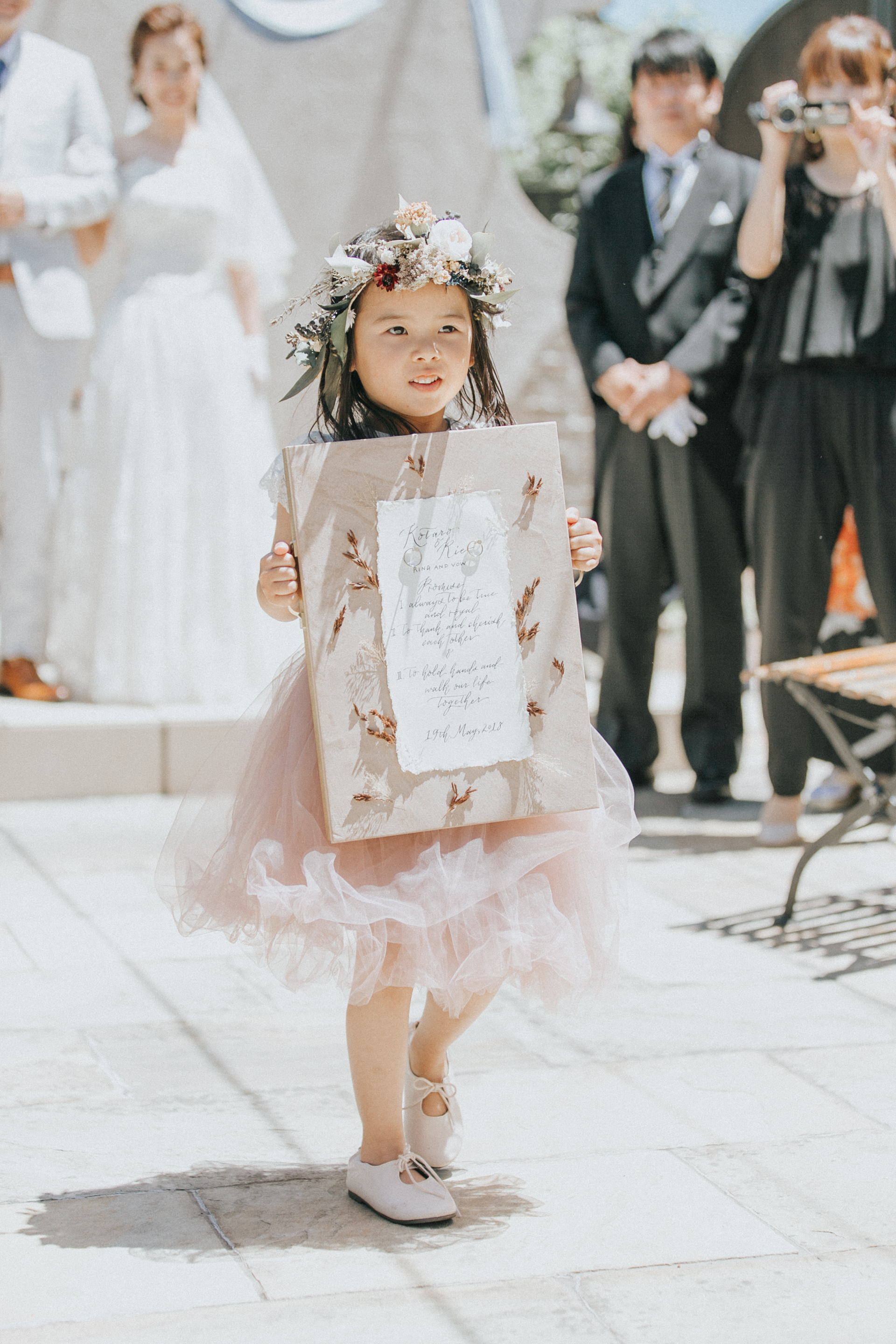(ちなみに別記事でもご紹介しているのですが、このリングガールが身につけている花かんむりは新婦がウェディングデザイナーのワークショップを受けながら手作りをしたものです)