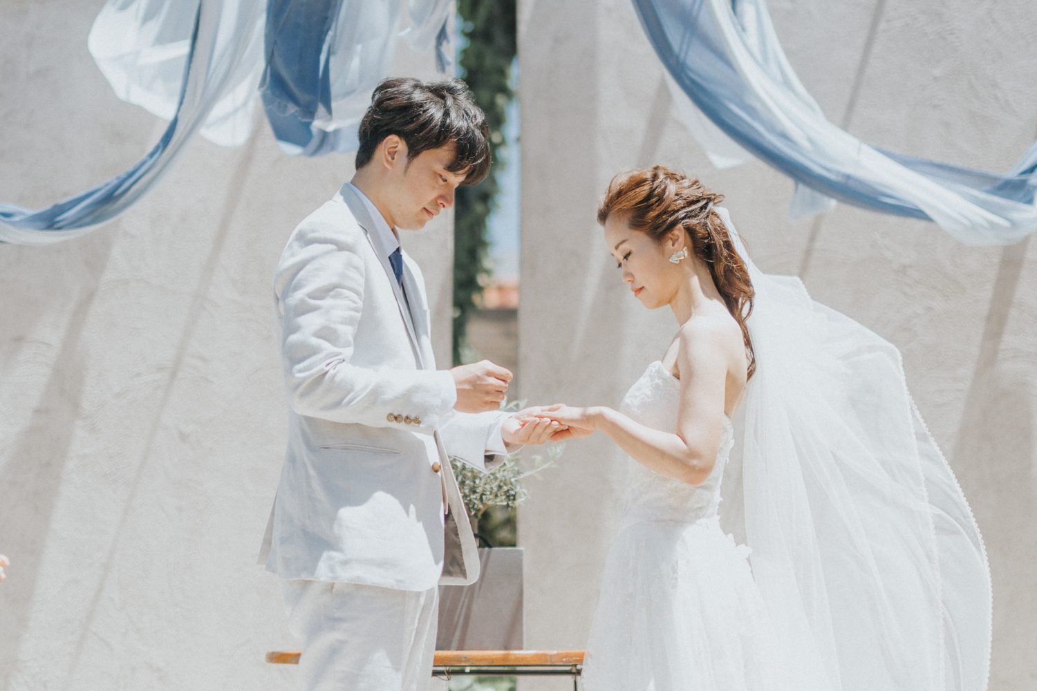 その前に、まずはあえてこのタイミングでヴェールアップを行いました。その理由としては、これから行うリングリレーの様子を、しっかりと目に焼き付けたいという事で、本来なら誓いのキスの前に行うこのヴェールアップをこのタイミングで行いました。