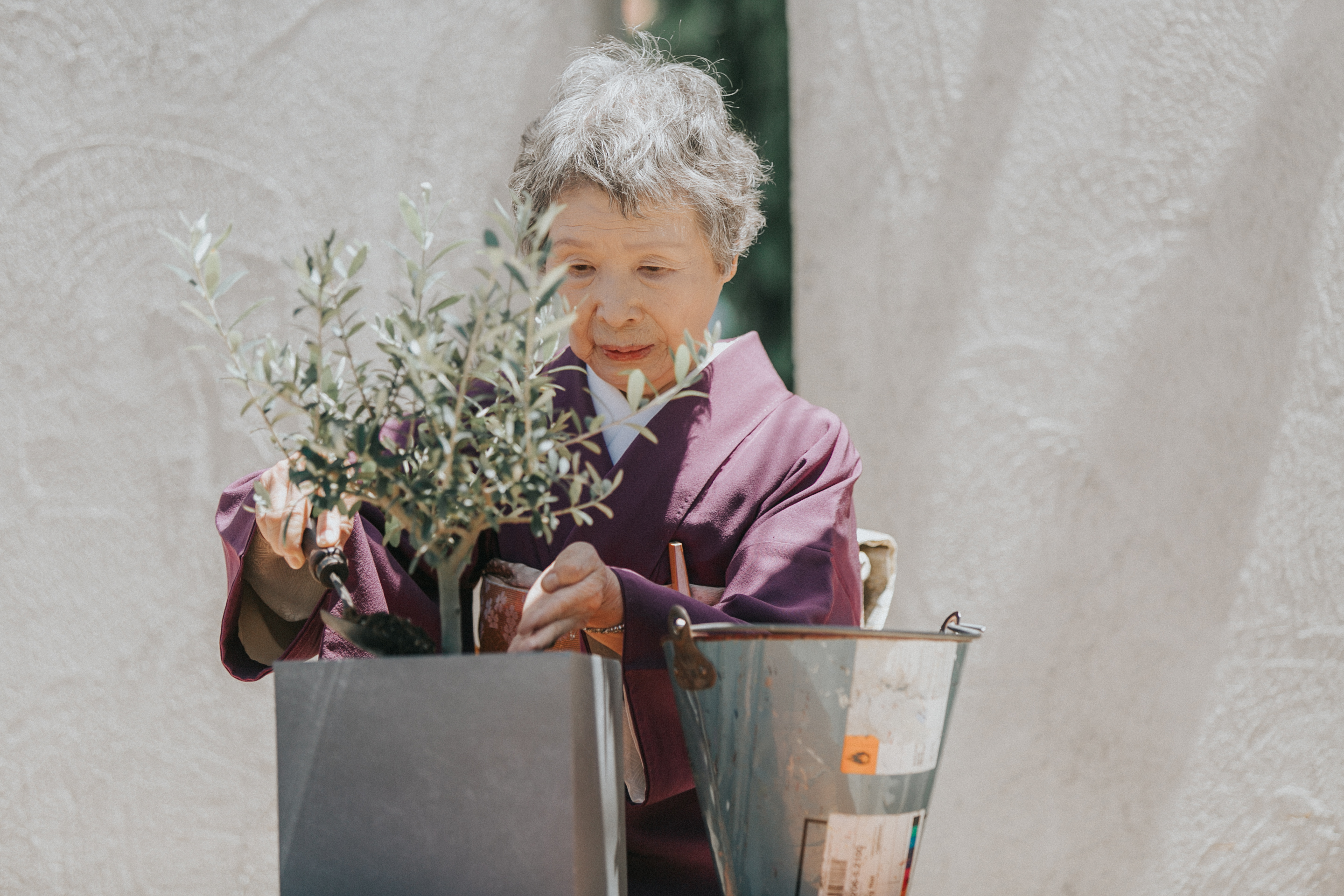 この結婚式の参列者の中で一番の人生の大先輩ともいえるお祖母様に、土固めをして頂き、