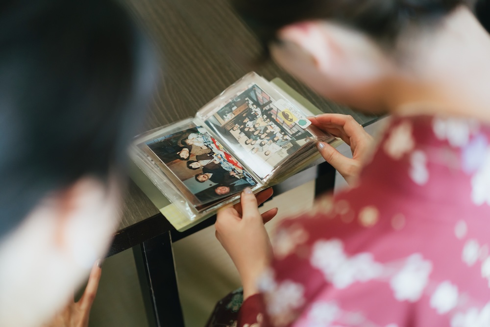 幼い頃に親御様が撮影したであろう写真が入っているアルバムを一緒に見る時間。