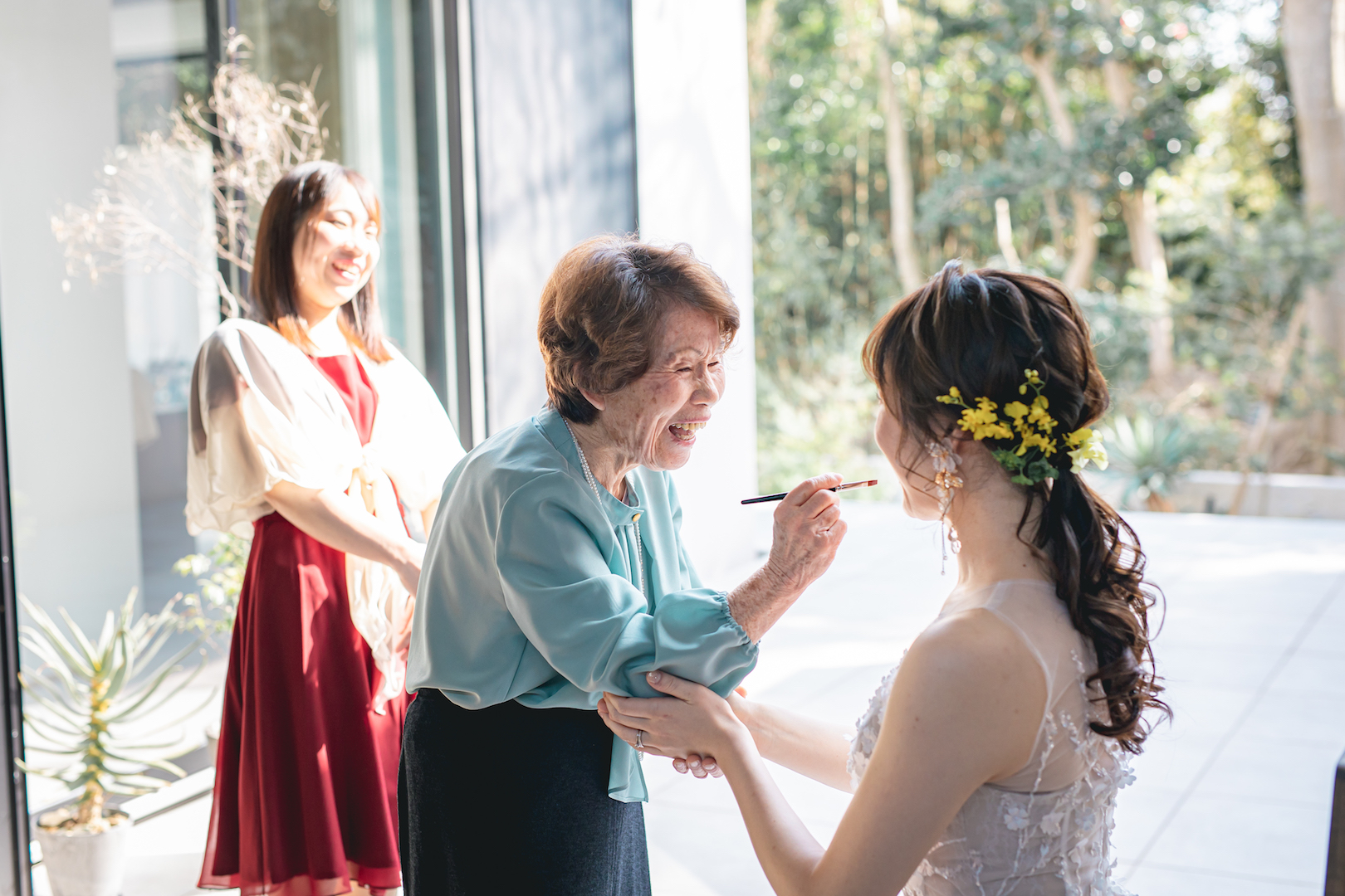花嫁支度の仕上げに、ご家族から口紅を差してもらう儀式。