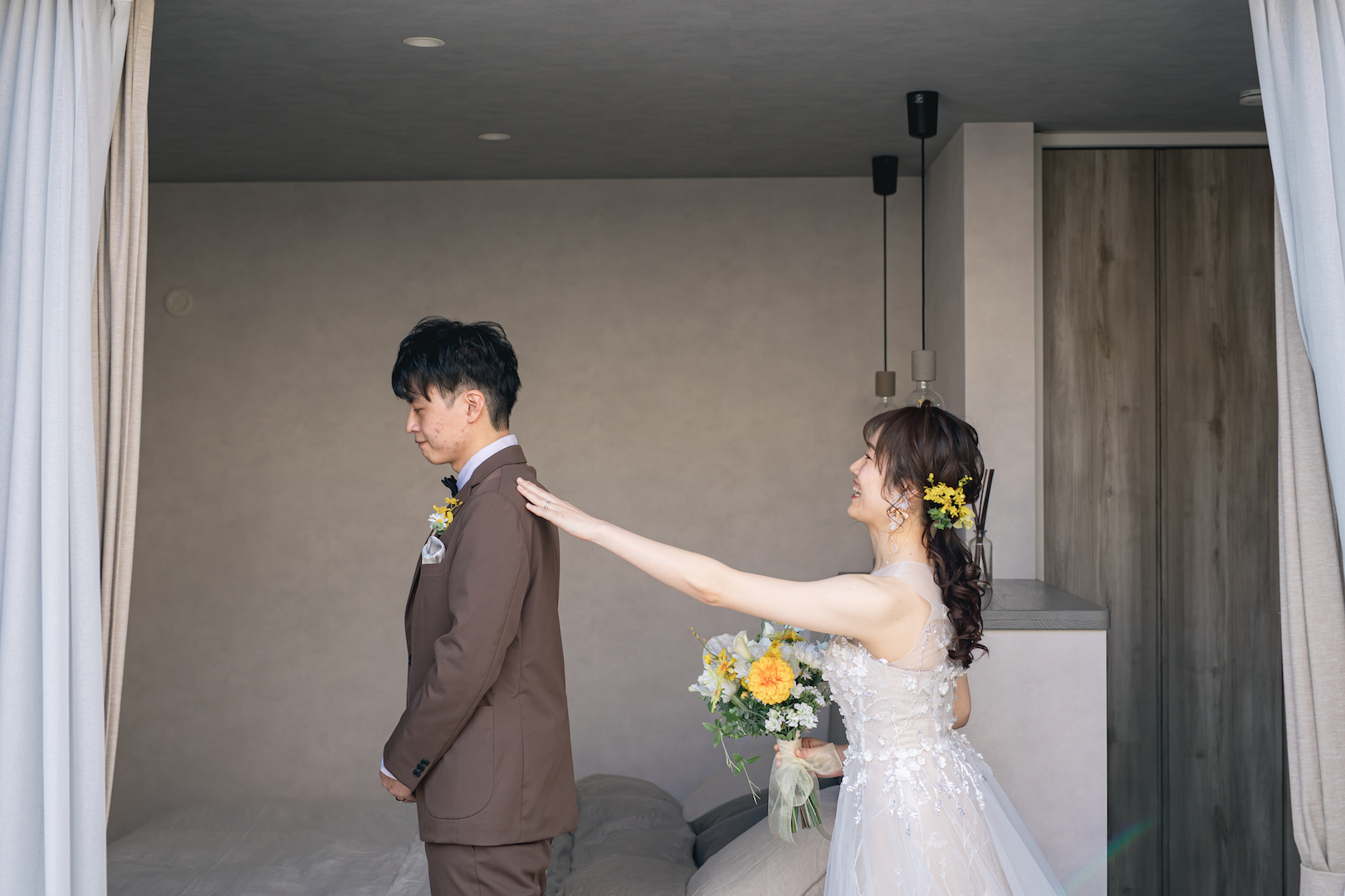 お互いの晴れ姿を見る瞬間。