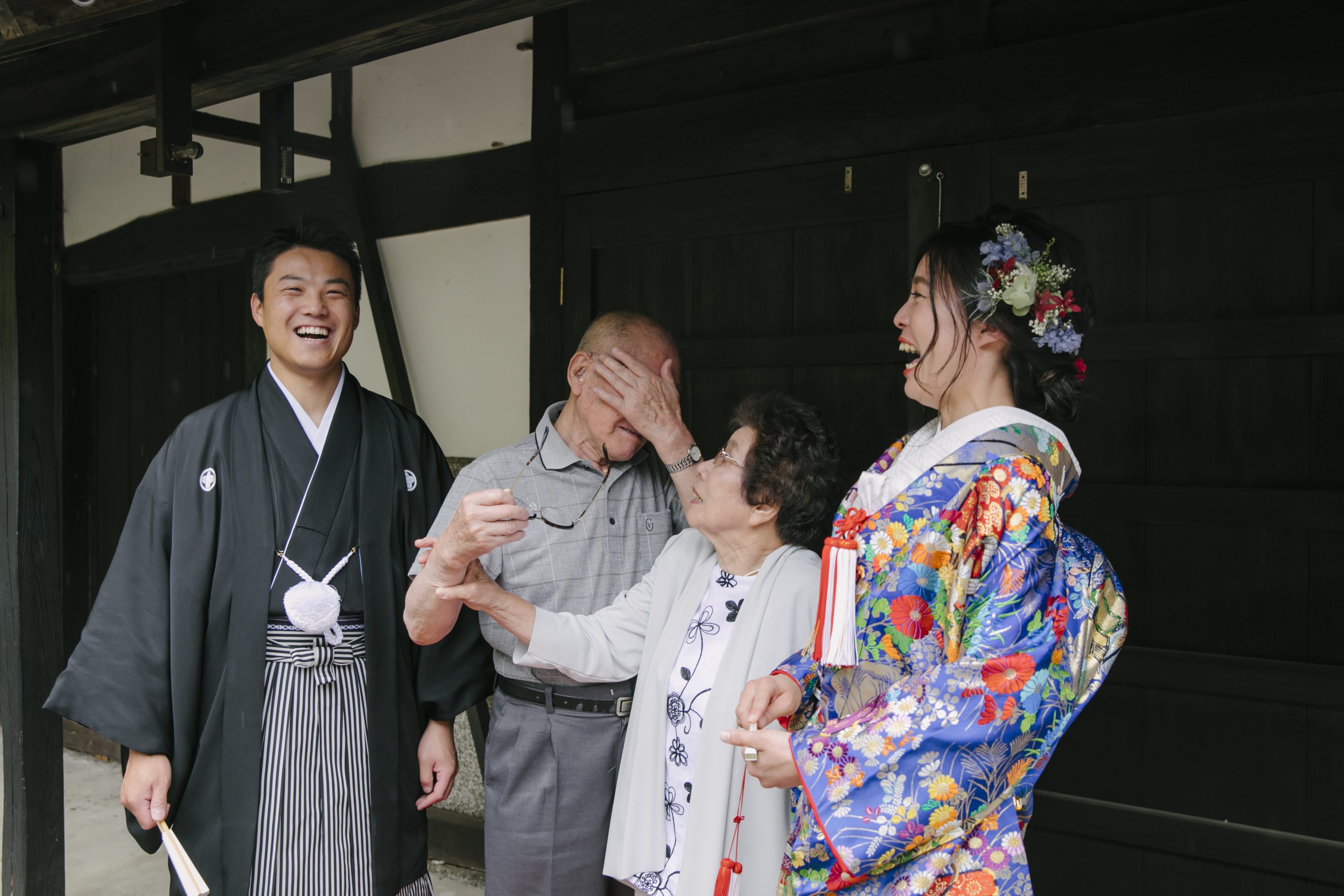 色打掛に着替えてからは、「家族団欒の様子を撮りたい!」と言っていた新婦の要望に応えるべく囲炉裏での撮影。