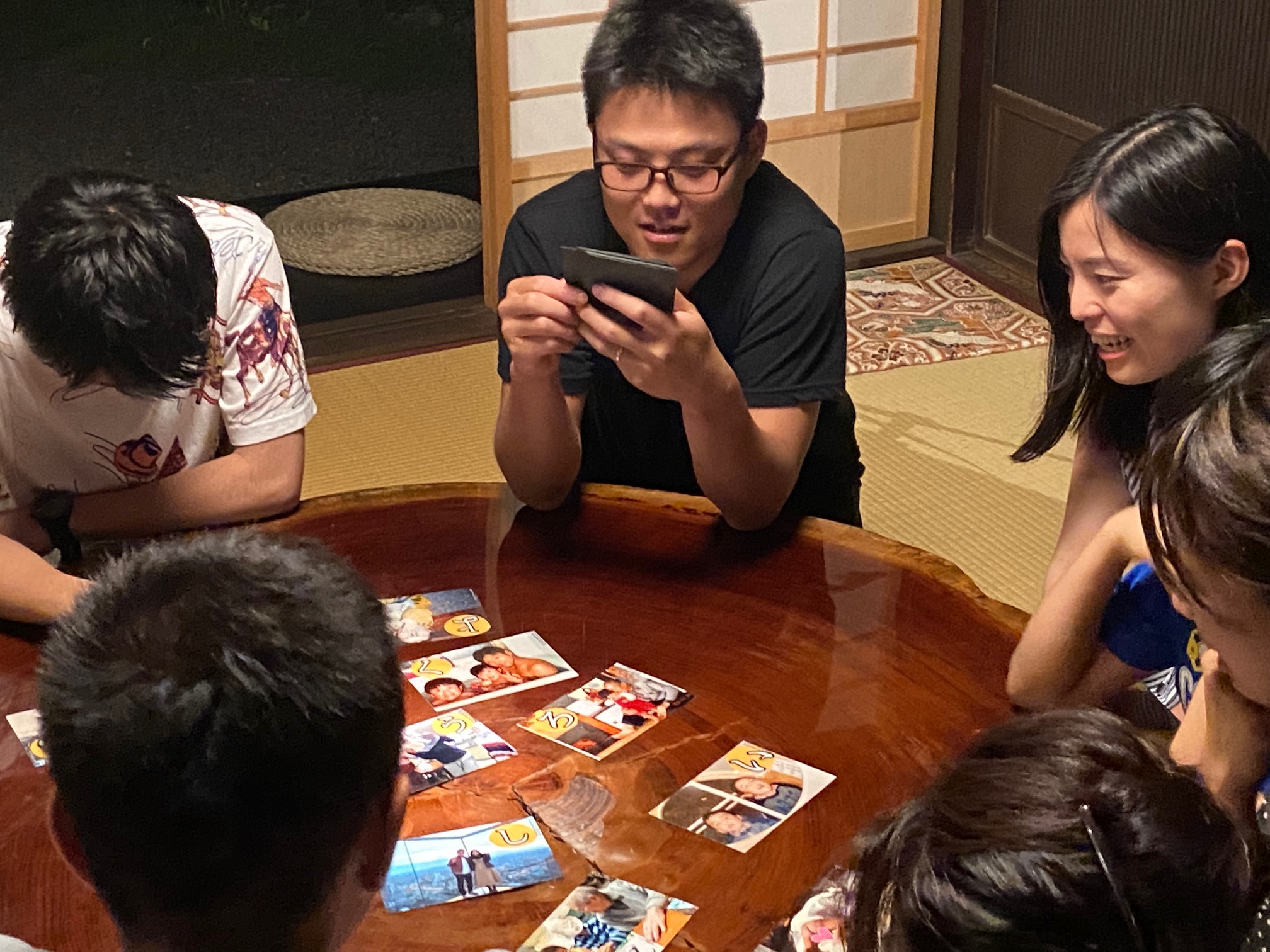 夕食後には今回の宿泊でプランニングしていた、おふたりの生い立ちを使った「かるた」でお互いのこれまでの人生を相手の家族にも知っていただきました。