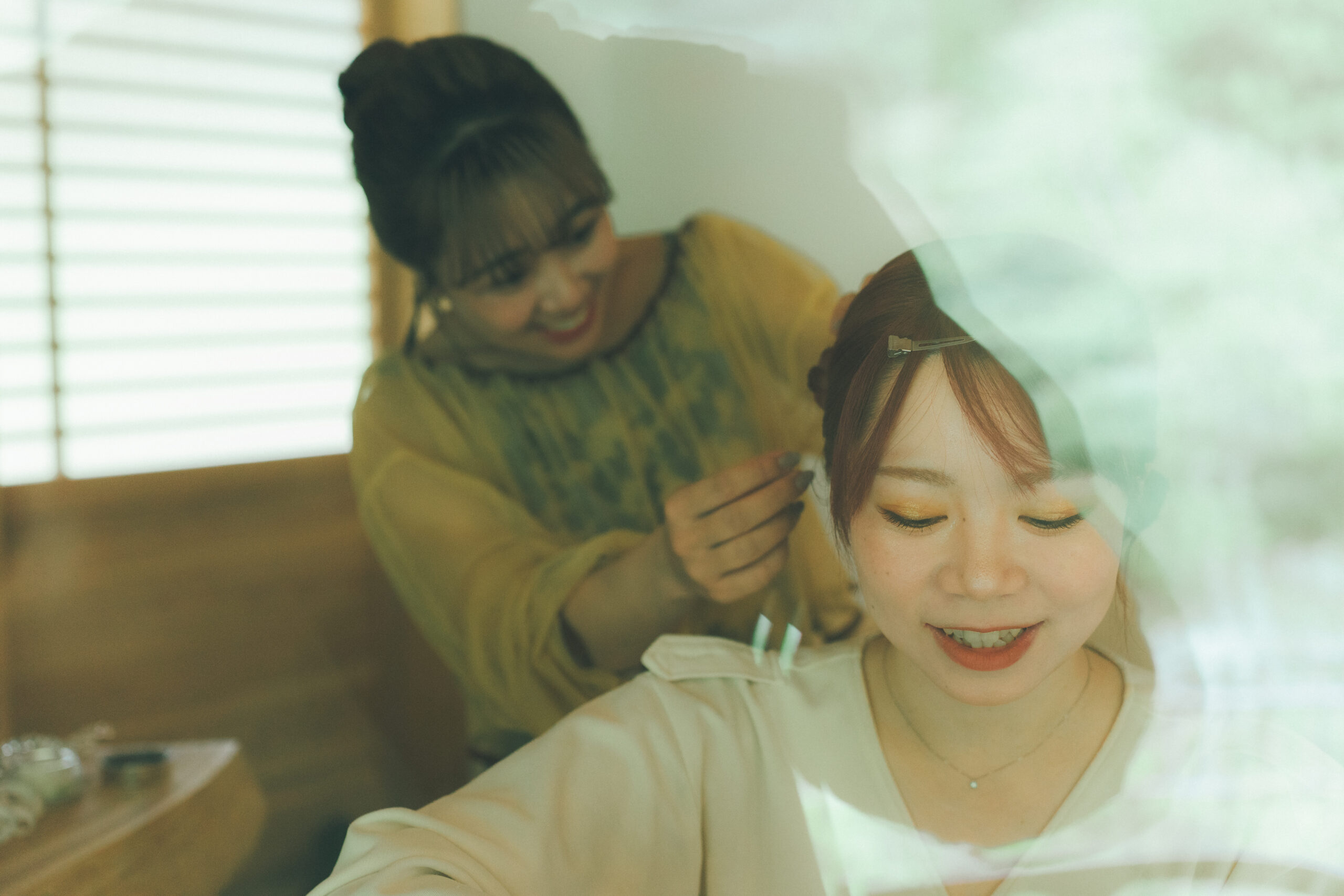 新婦さまは早朝から花嫁姿を手がける美容師仲間と