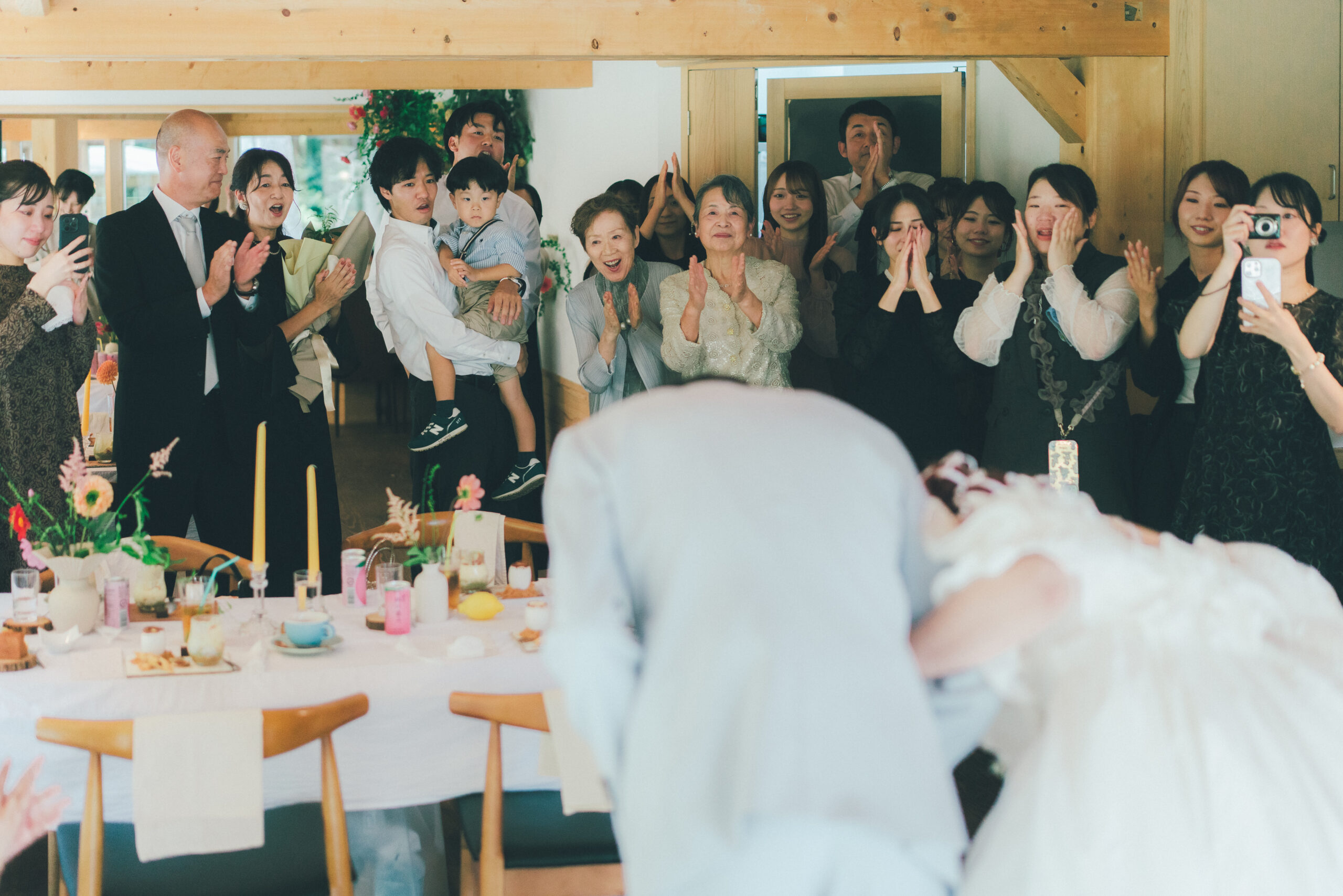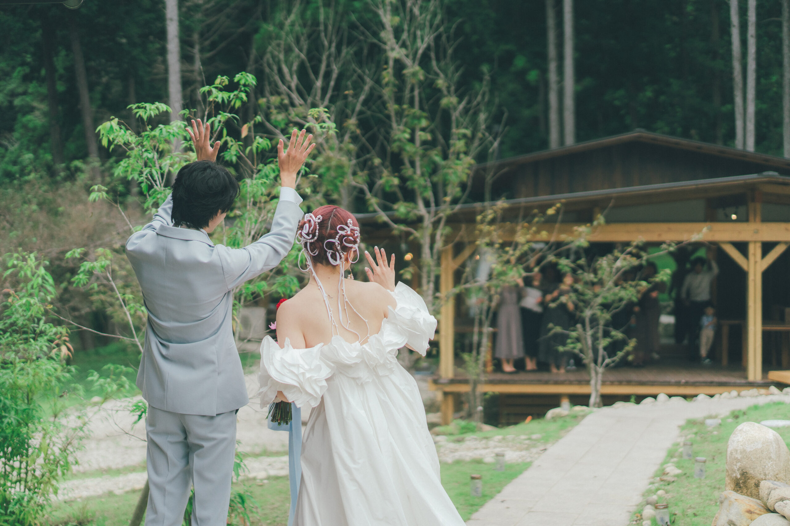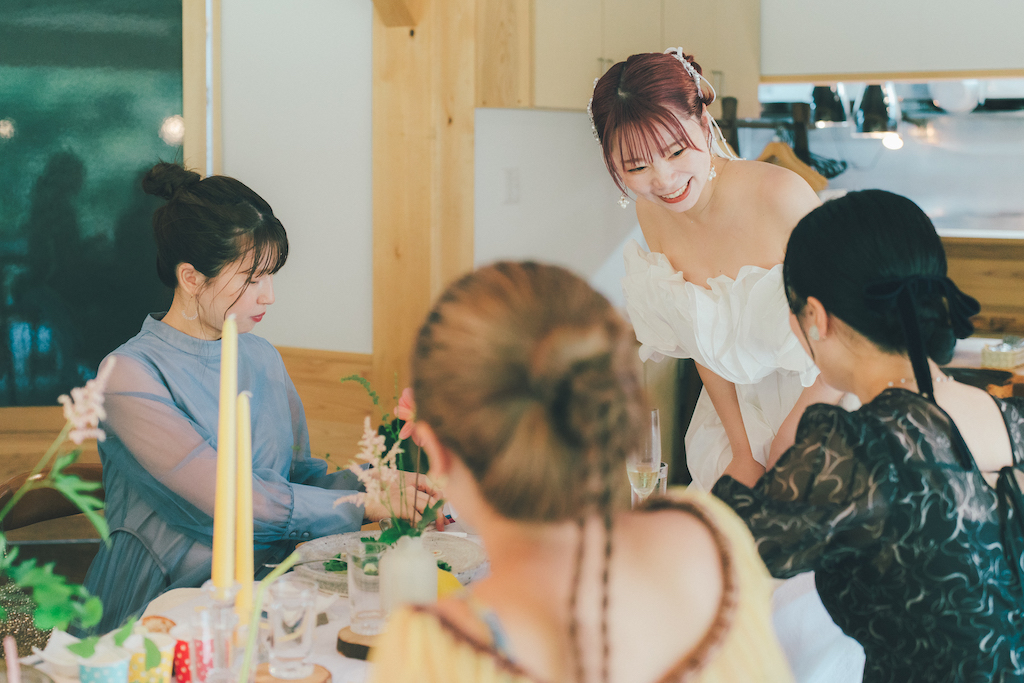 結婚式場でない場所で叶える結婚式は、整った式場を選択するよりも考える事があり大変でした。でも決まった流れにのって過ごすものではなく、自分にとって意味のある時間だけを選択することができる良さがありました。私の場合ははじめに考えていた想いはもちろん、自分の花嫁姿を大切な仲間にお願いすることができたり、自分の手で妹のヘアセットをしてあげる願いも叶えてくださったり、美容師ならではの引出物もこだわれたり。