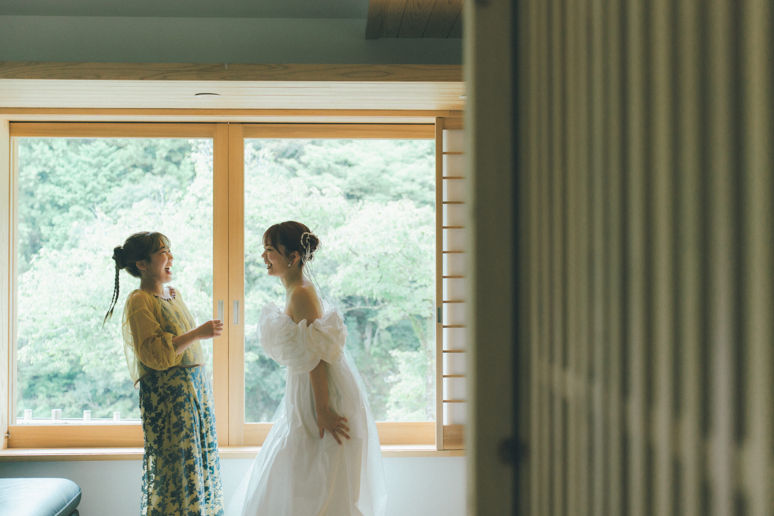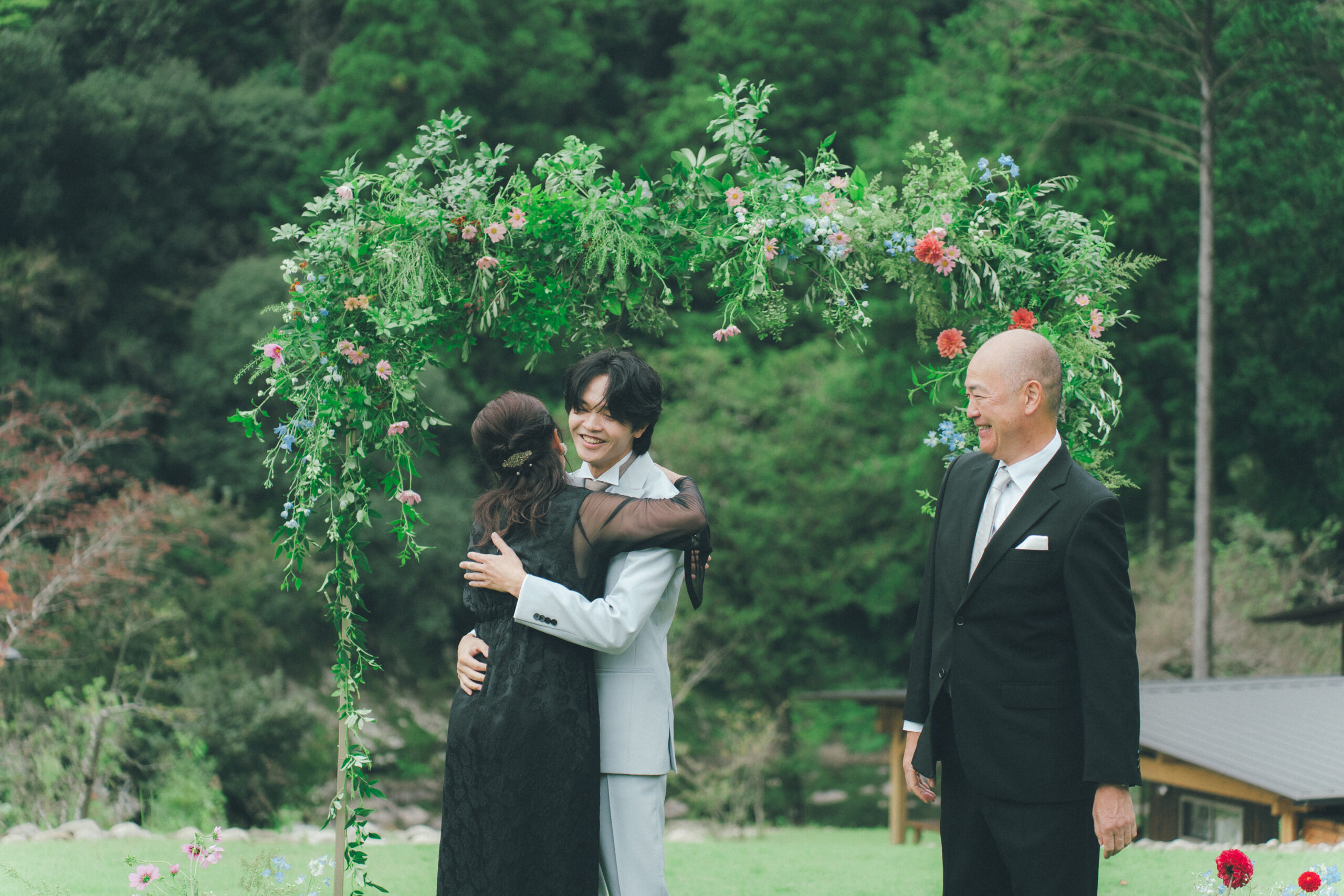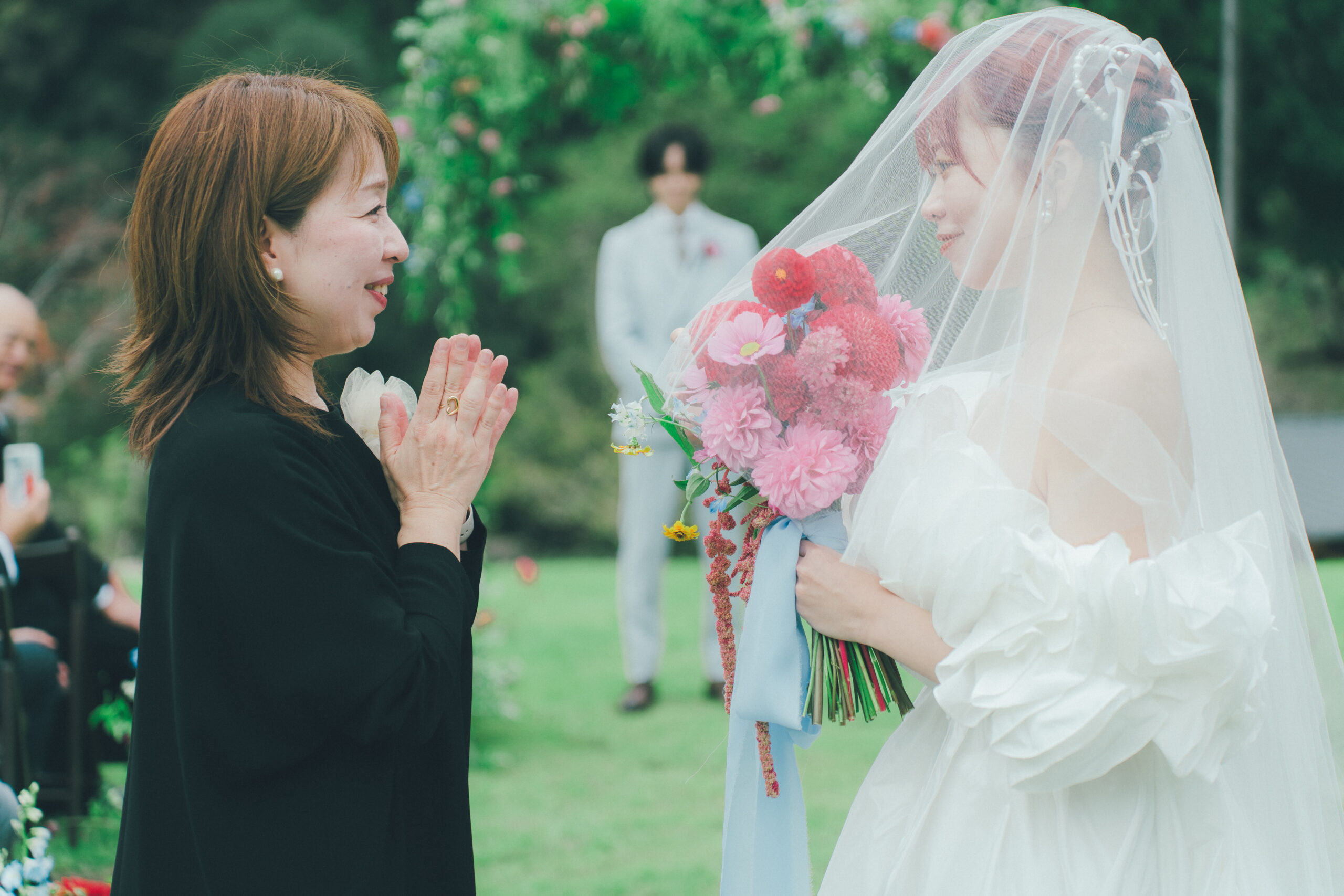 結婚式場でない場所で叶える結婚式は、整った式場を選択するよりも考える事があり大変でした。でも決まった流れにのって過ごすものではなく、自分にとって意味のある時間だけを選択することができる良さがありました。私の場合ははじめに考えていた想いはもちろん、自分の花嫁姿を大切な仲間にお願いすることができたり、自分の手で妹のヘアセットをしてあげる願いも叶えてくださったり、美容師ならではの引出物もこだわれたり。